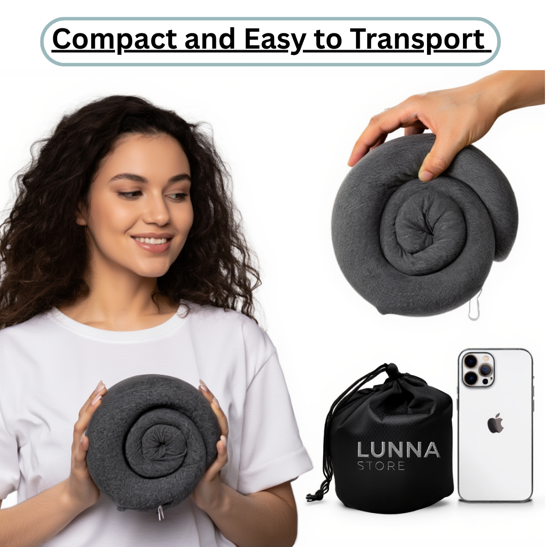 Long flights shouldn't mean painful arrivals. The LUNNA Travel Pillow's patented design keeps your posture upright and prevents neck strain, so you arrive refreshed—not stiff.